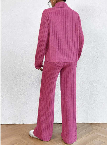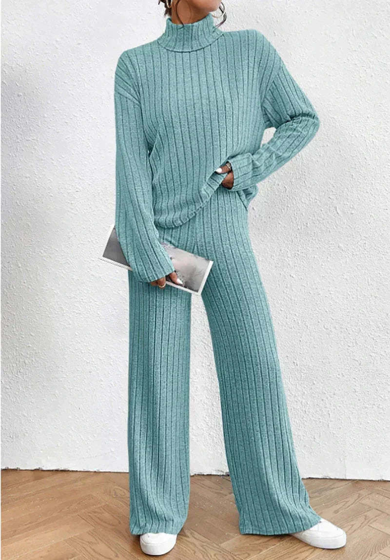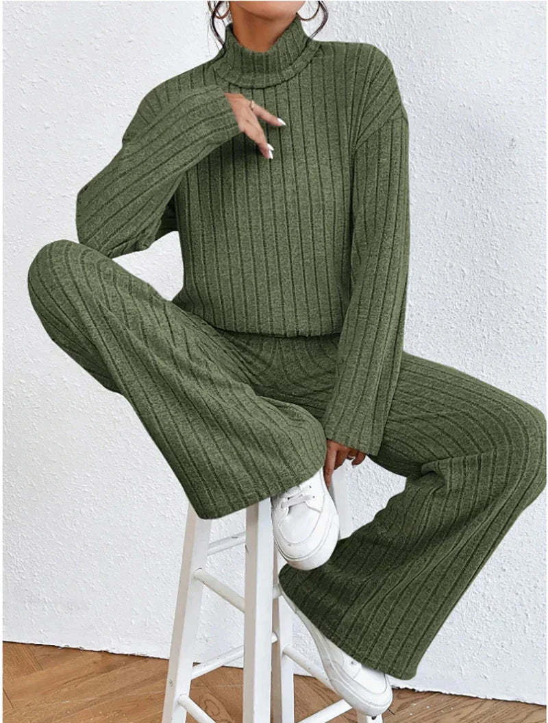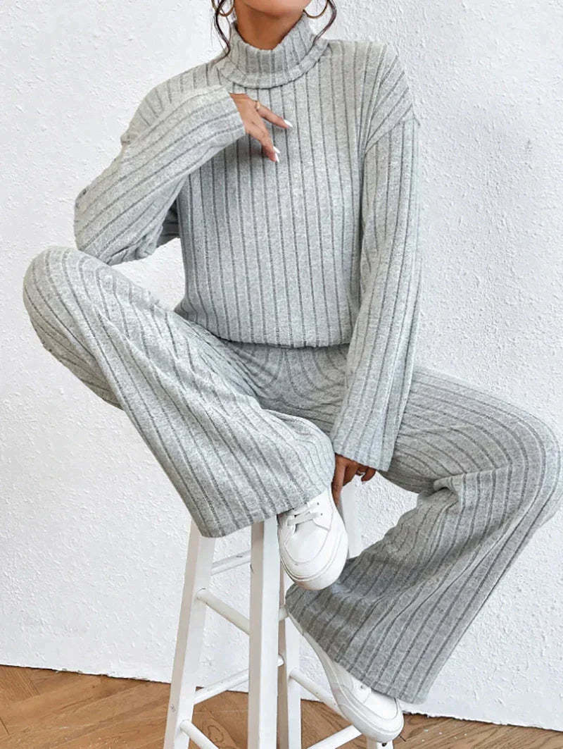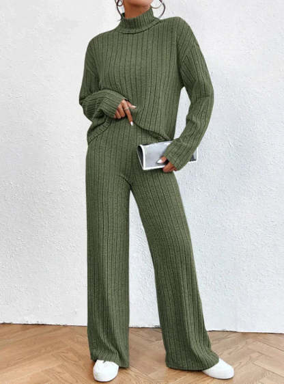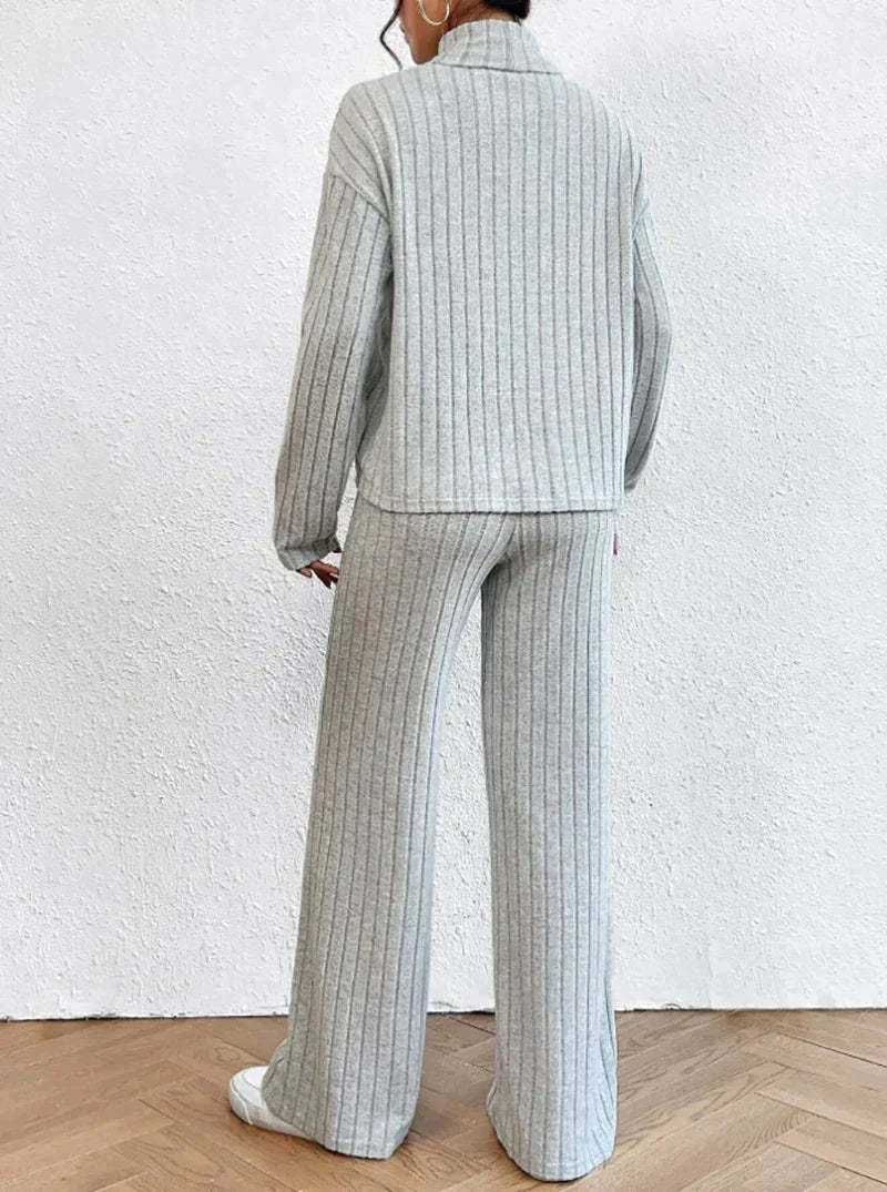 اكتشف أسلوب وراحة الخريف والشتاء مع هذه المجموعة الأنيقة المكونة من قطعتين. تتكون المجموعة من سروال مرن بحجم جميل يمنح مظهرك أناقة متطورة. حسب المناسبة، يمكنك ارتداء هذا السويتر بأسلوب أنيق أو غير رسمي بفضل تصميمه المتعدد الاستخدامات.